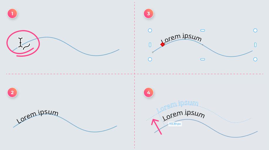 that appears. You can move text along the path, move it to the other side of the path, or offset it from the path.